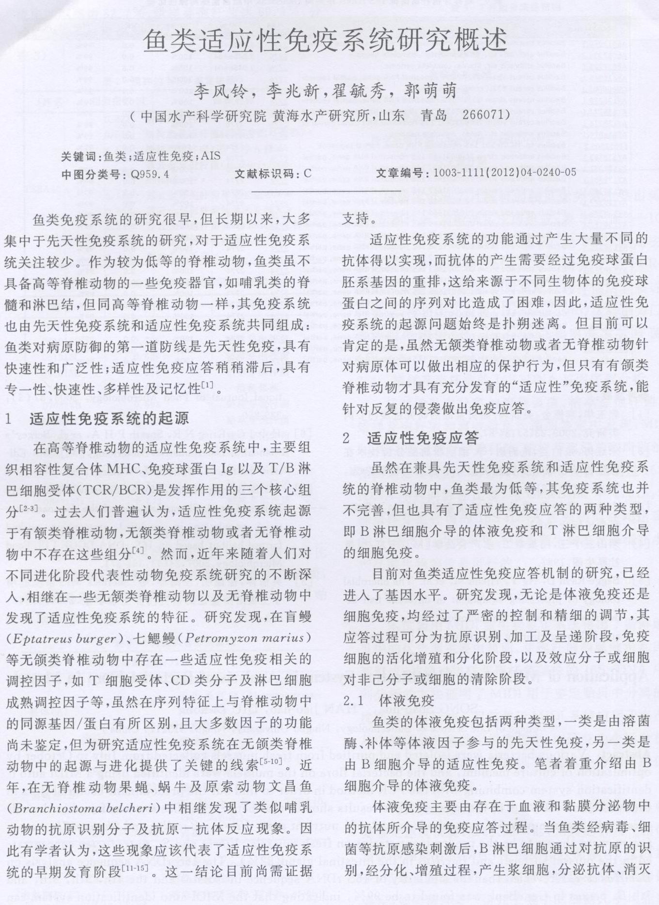鱼类适应性免疫系统研究概述
