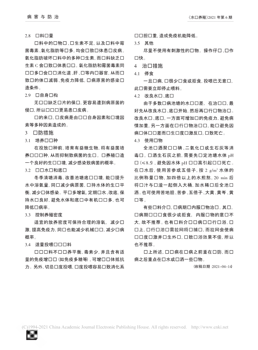 鱼类烂皮病的病因及防治技术